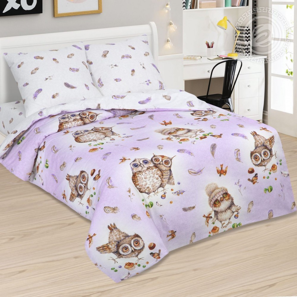 Принты с совами сейчас очень популярны. Рисунок с мудрыми пташками украсил комплект из поплина «Сладкий Я».