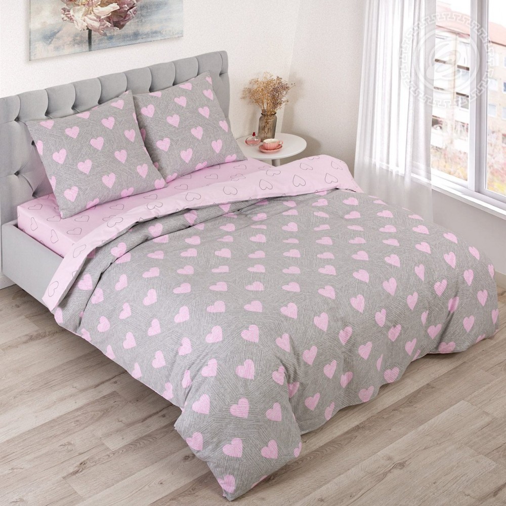 «Купидон» символизирует любовь и нежность, красоту и романтику. Постельное белье с сердечками из поплина – это нежный и утонченный образ, который украсит спальню и создаст атмосферу гармонии и уюта. Светлые пастельные тона, элегантные мотивы, – комплект из 100% хлопка станет чудесным подарком девушкам, молодоженам на свадьбу, влюбленным парам.