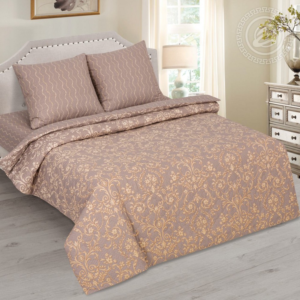 Стиль рококо теперь и в вашей спальне. «Таинство» - это комплект из практичной ткани поплин, который выполнен в стилистике рококо. Пастельные оттенки с золотом, витиеватые завитки, составляющие изысканный рисунок, - постельное белье выглядит очень элегантно, богато и роскошно. Оно станет украшением Вашей спальни. Отличительная особенность комплекта зима-лето - это стеганый утепленный пододеяльник. Пододеяльник подшит с одной стороны изнутри тонким слоем синтепона. Утеплитель закрыт дополнительным слоем поплина, что придает изделию эстетичность и изящество. В итоге комплект универсален для использования зимой и летом. В холодные зимние дни утепленный пододеяльник со вставленным в него одеялом прекрасно согревает. Летом пододеяльник выполняет роль облегченного одеяла, даря комфорт и красоту!