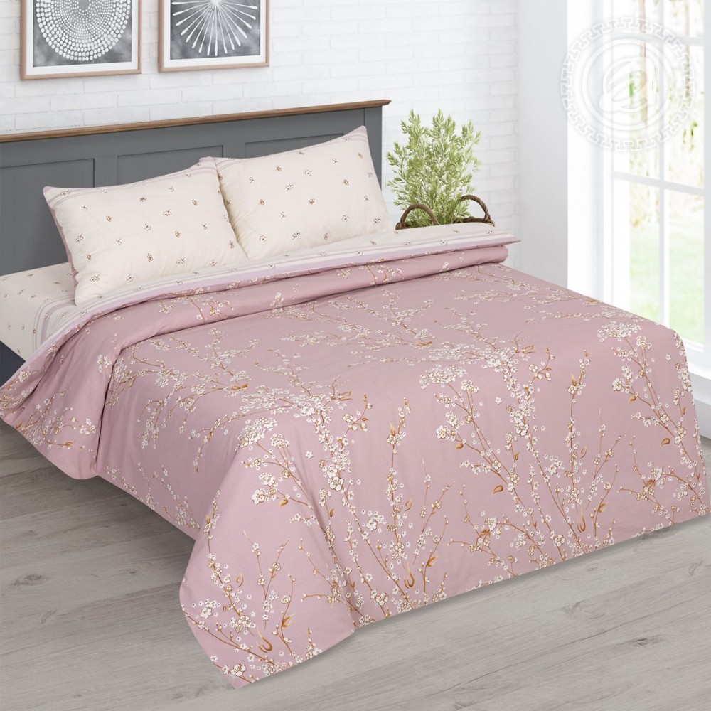 «Сакура» - традиционные японские мотивы в нежно-розовом. Нюдовые оттенки в идеальной гармонии с утонченной композицией в виде веточек сакуры – символом любви, женской красоты и обновления. Поплин с цветочным принтом олицетворяет весенний пейзаж с нотками экзотики. Настоящий японский сад в Вашей спальне.