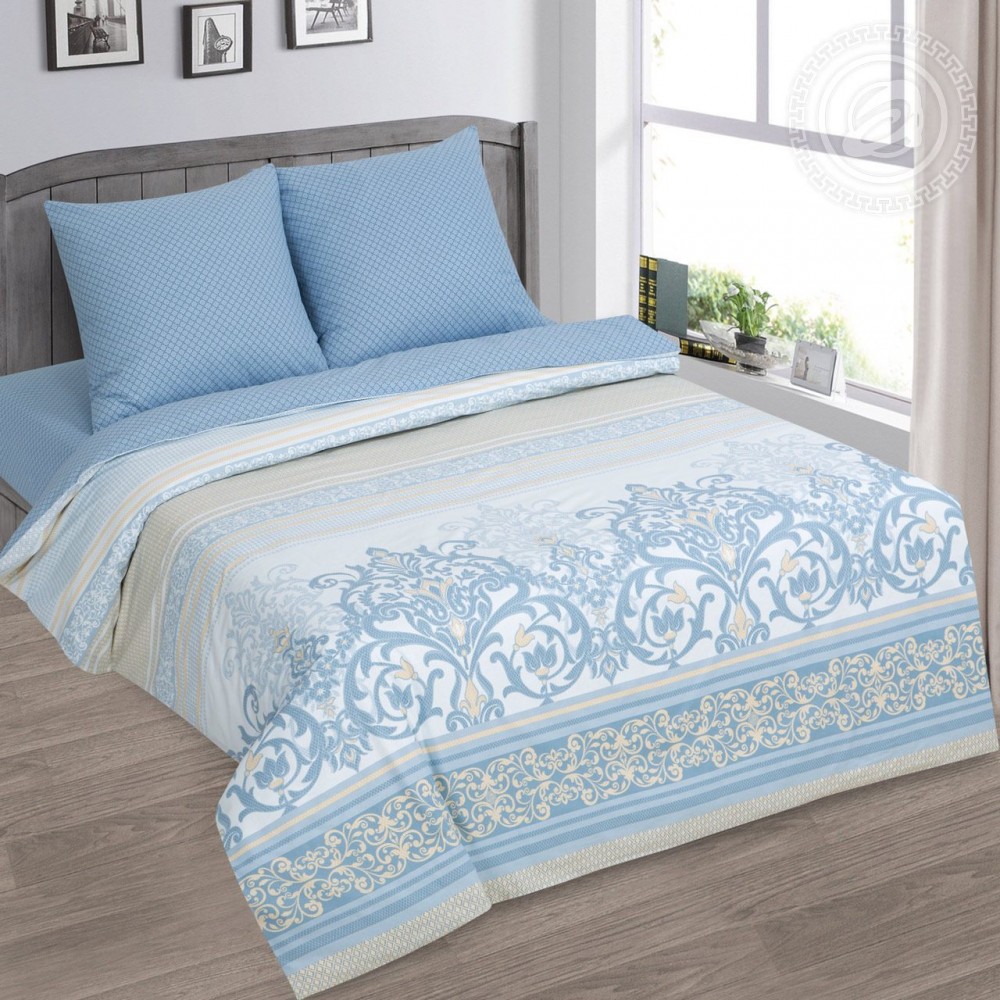 «Тиара» - непревзойденная классика в современном исполнении. Комплект из поплина украшен необычным орнаментом в виде изящных узоров и вензелей. Все мотивы в пастельных тонах очень изысканны и роскошны. Это красивая и нежная композиция, которая будет эффектна как в классическом, так и современном интерьерах и привнесет нотки величия и элегантности в облик спальни.