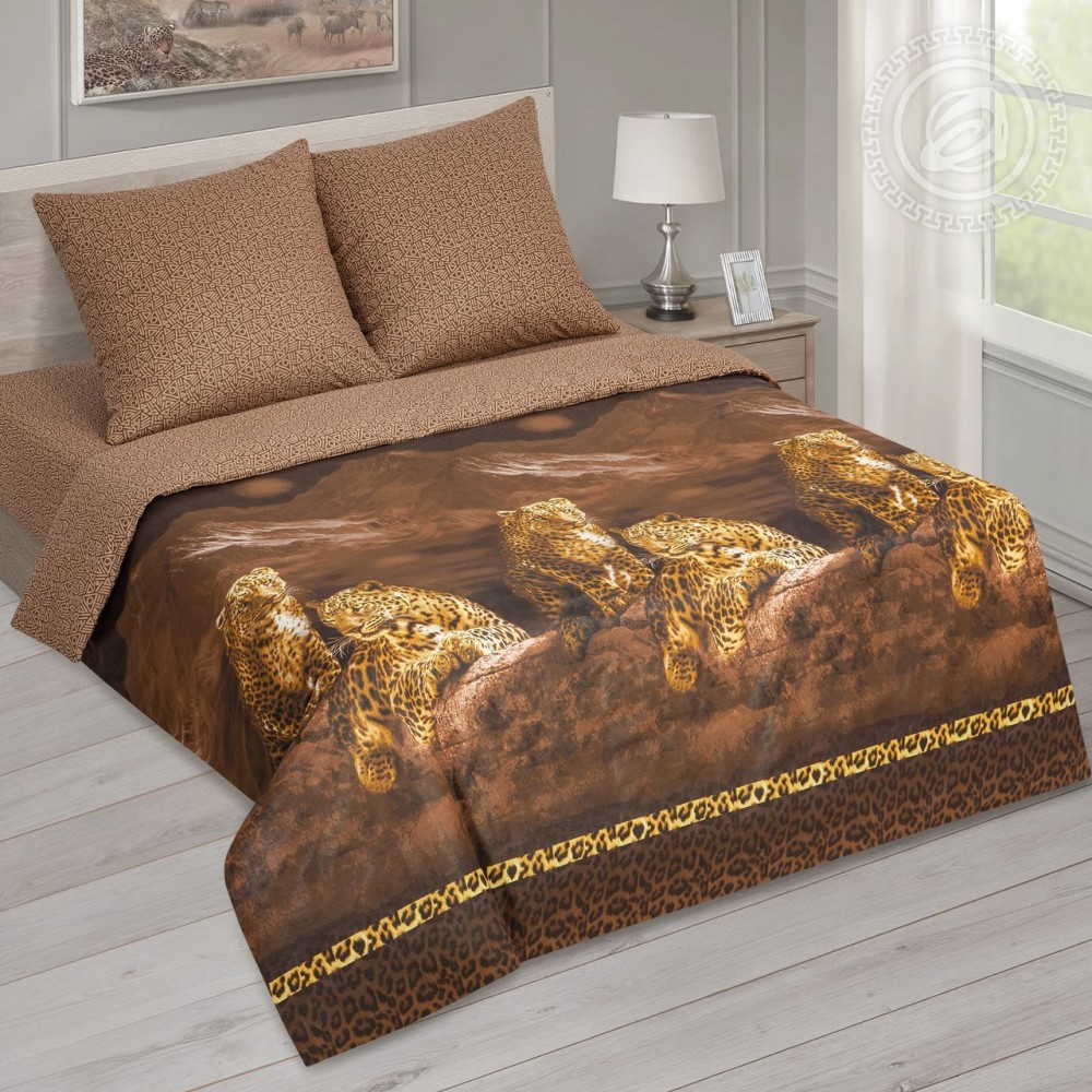Если Вы хотите оформить спальню в африканском стиле, то «Лео» станет незаменимым аксессуаром в интерьере. Это стильный и актуальный принт в теплых тонах, который символизирует силу, страсть, экзотику. Величавые и красивые леопарды будто отдыхают в саванне и спокойно наблюдают за окружающим миром.