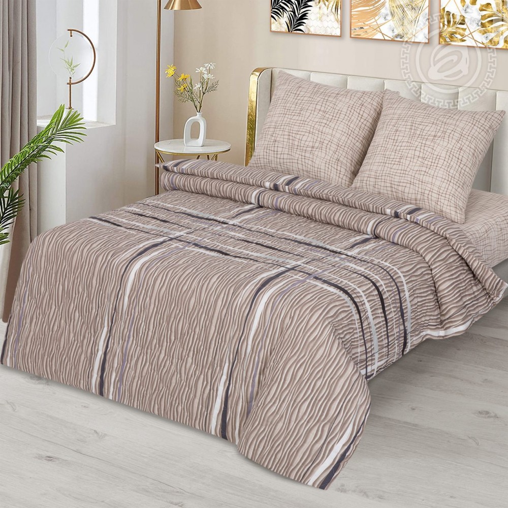 Отличительная особенность комплекта зима-лето - это стеганый утепленный пододеяльник. Пододеяльник подшит с одной стороны изнутри тонким слоем синтепона. Утеплитель закрыт дополнительным слоем бязи, что придает изделию эстетичность и изящество.