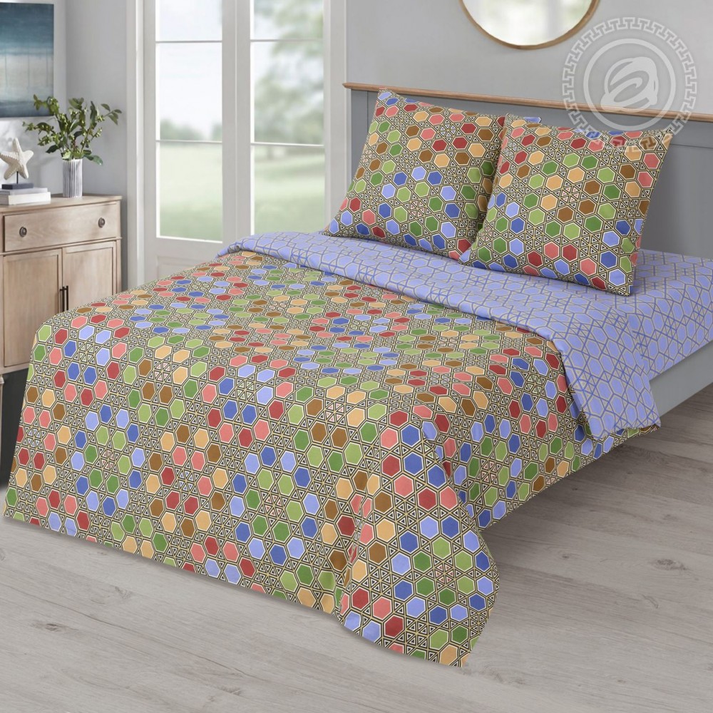 «Коломбино» - яркий дизайн в бязи, который напоминает о лете. Только посмотрите на красочные детали и разноцветную геометрию. Красные, синие, оранжевые, голубые фигуры образуют лепестки и листья сказочных цветов, которые распускаются на зеленеющих лугах. Комплект из 100% хлопка с эксклюзивным рисунком дарит позитивные эмоции и чувство комфорта.