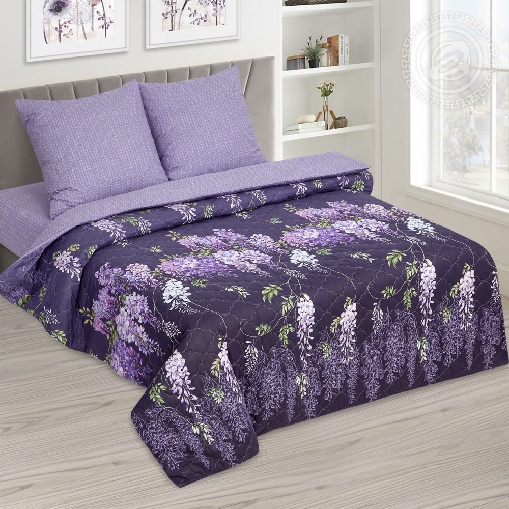 На комплекте из поплина «Глициния» композиция с необыкновенно красивыми и изящными бутонами и лепестками, которая элегантна и очень эффектна. Цветочный дизайн дополнен яркой и насыщенной палитрой.