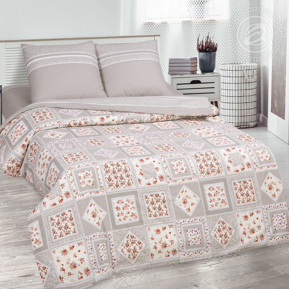 Такой же нежный, как название, комплект позволит спальне заиграть кокетливыми красками. Необычный дизайн станет ярким акцентом, а строгие серые квадраты не дадут этому стать безвкусным.
