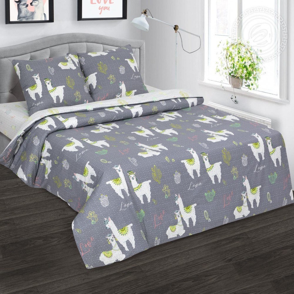 В сказочной стране снов живут самые добрые и милые ламы. Они гуляют среди зеленых кактусов или отдыхают в тени от палящего солнца. Наши ламы – настоящие очаровашки. Их головы украшают разноцветные шапочки, а ушки – оригинальные серьги. Комплект постельного белья из поплина с модным принтом и в пастельной цветовой гамме сделает спальню красивой и уютной.