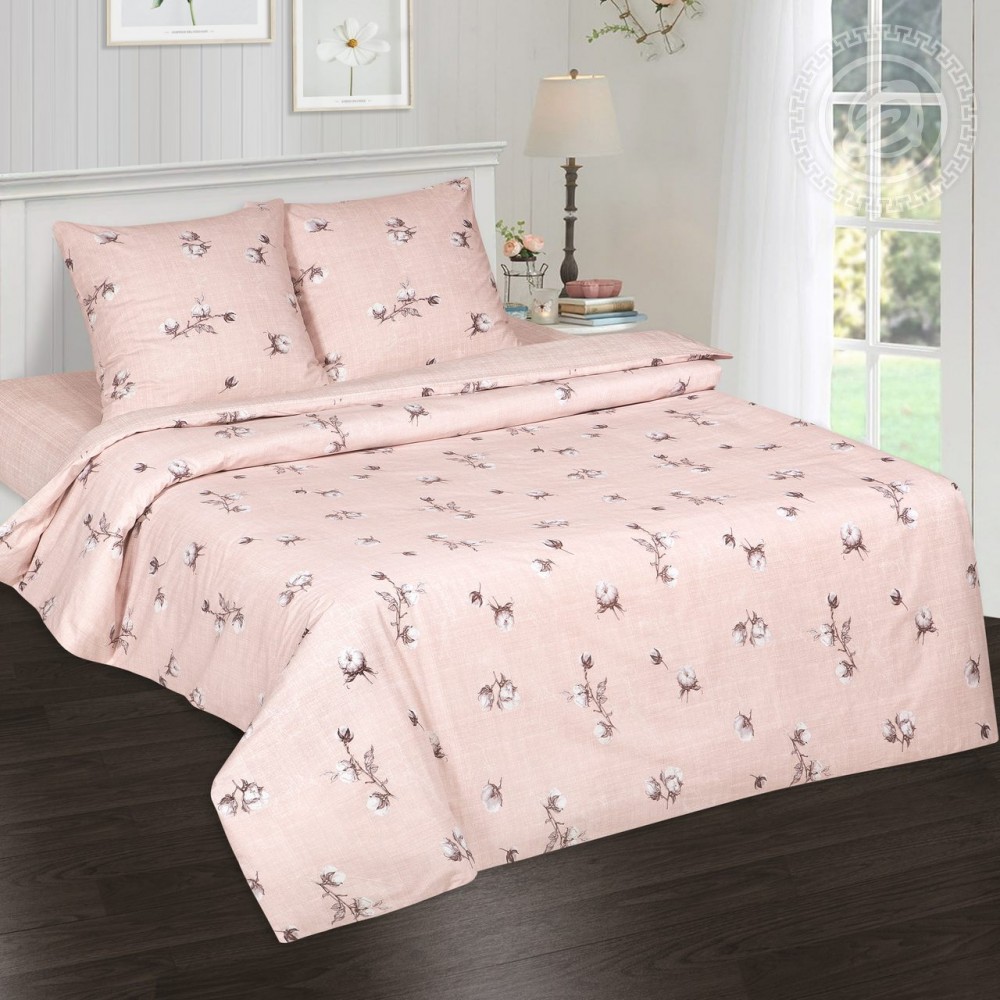 Постельное белье из поплина «Нежность хлопка» украсил воздушный дизайн в теплой льняной палитре. Оригинальный рисунок с цветочками хлопка очень изящен.