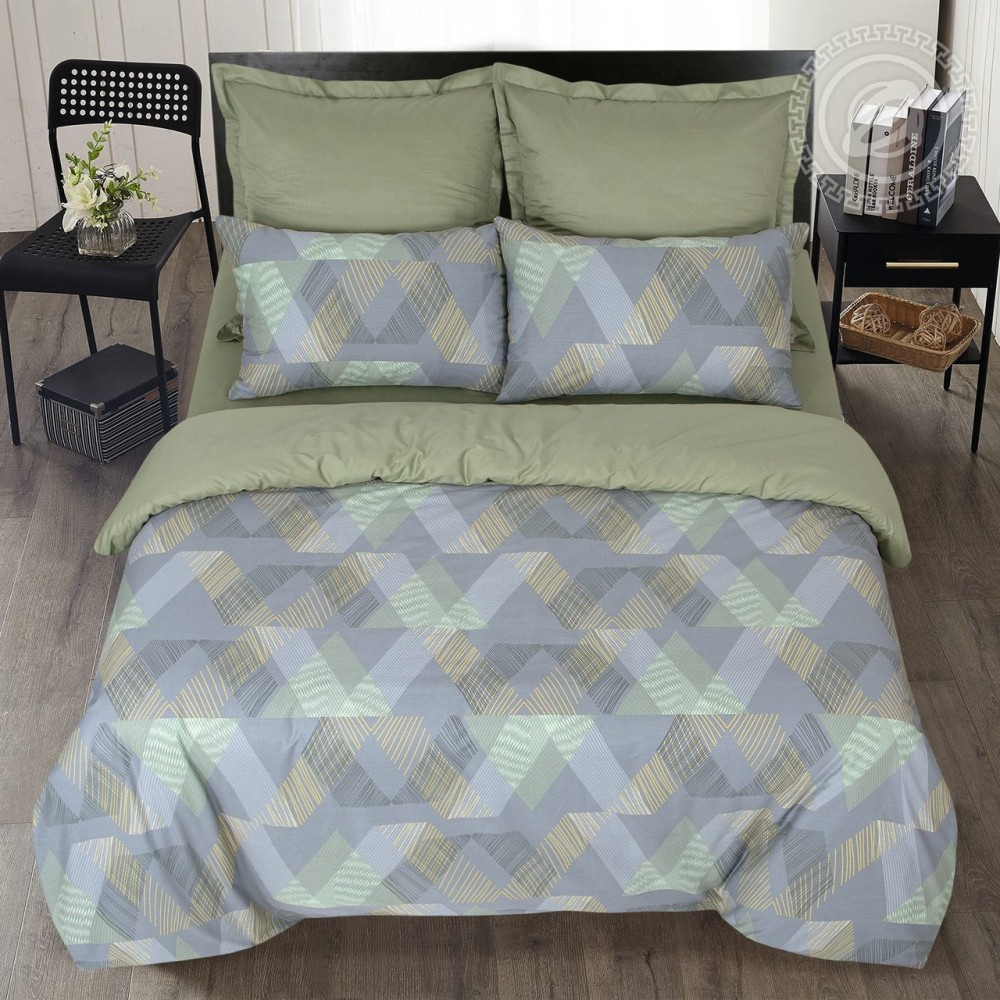 «Бенедикт» - сдержанный дизайн в приглушенных оттенках. Он выполнен в пастельной гамме с необычным геометрическим рисунком в виде вертикальных и горизонтальных цветных полос, образующих необычный узор. Премиум сатин с гладкой и шелковистой поверхностью и модным принтом станет элегантным акцентом и для классики, и для хай-тека.
